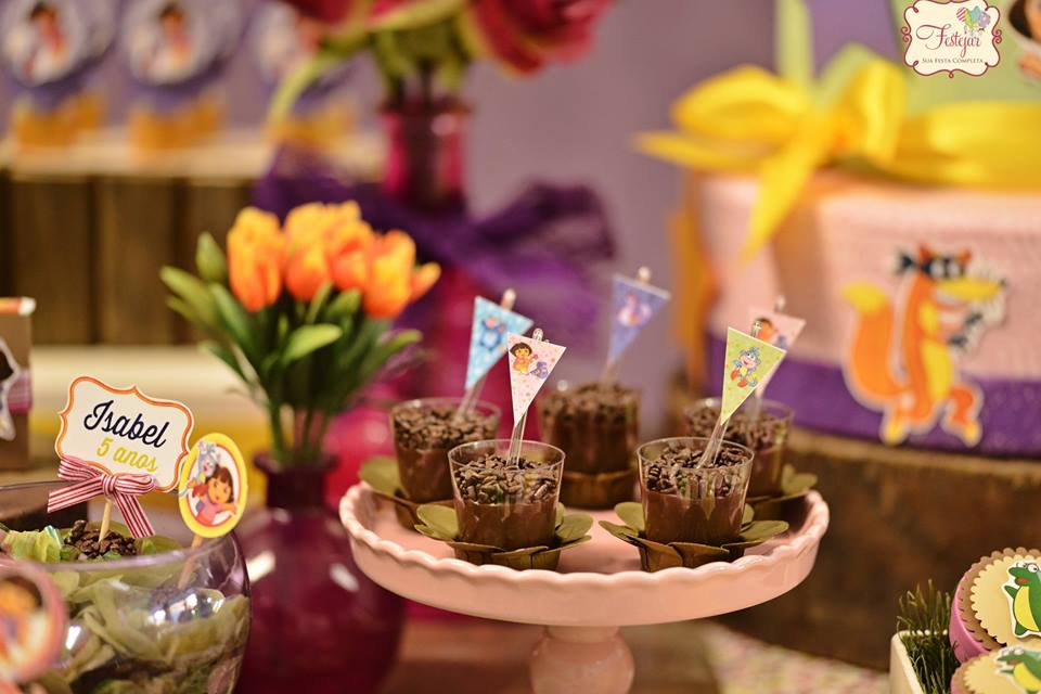 Festa Dora Aventureira para Isabel Publicado em 15 jan, 2016 por Entre na FestaCategorias: Temas de MeninaCompartilhe: Pense numa festa fofa e divertida. Pensou? Foi assim o aniversário da Isabel! A Festejar arrasou na decoração e nos mimos personalizados. Além disso, a paleta de cores ficou um arraso. Vem conferir os detalhes e se apaixonar por essa celebração!
